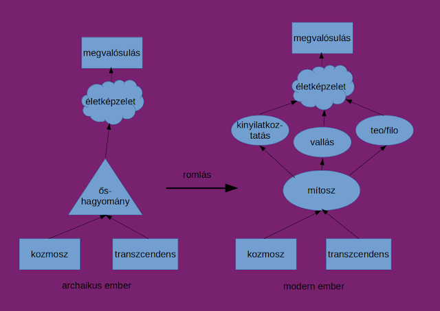 Az archaikus ember és a modern ember gondolkodásmódja alapvetően különbözött. Míg az archaikus ember a rendben, a hierarchiában gondolkodott - addig a modern ember a szabadságot tette önmaga rendező elvévé. A cél itt is, ott is elvileg ugyanaz: megtalálni azt a fajta életet, amivel az ember beleilleszkedik a tágabb értelemben vett világ rendszerébe. Előbbi esetében ezt készen kapja - utóbbi esetében azonban dolga, feladata saját üdvtervén, életképzetén dolgozni, s így illeszkedni bele a tágabb értelmű világ hierarchikus rendjébe.